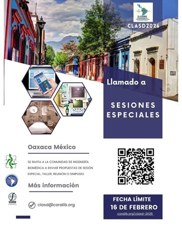 The Organizing Committee of the 2nd IFMBE Latin American Conference on Digital Health (CLASD 2026) invites researchers, scholars, scientists, and professionals to submit their research papers and contribute to this prestigious event. CLASD 2026 is dedicated to promoting the latest Latin American advancements in Digital Health and their applications, aiming to improve healthcare, patient safety, and quality of life. CLASD 2026 will be organized in conjunction with the XLIX National Congress of Biomedical Engineering in Oaxaca and with support of Anáhuac University and OCCE Oaxaca.