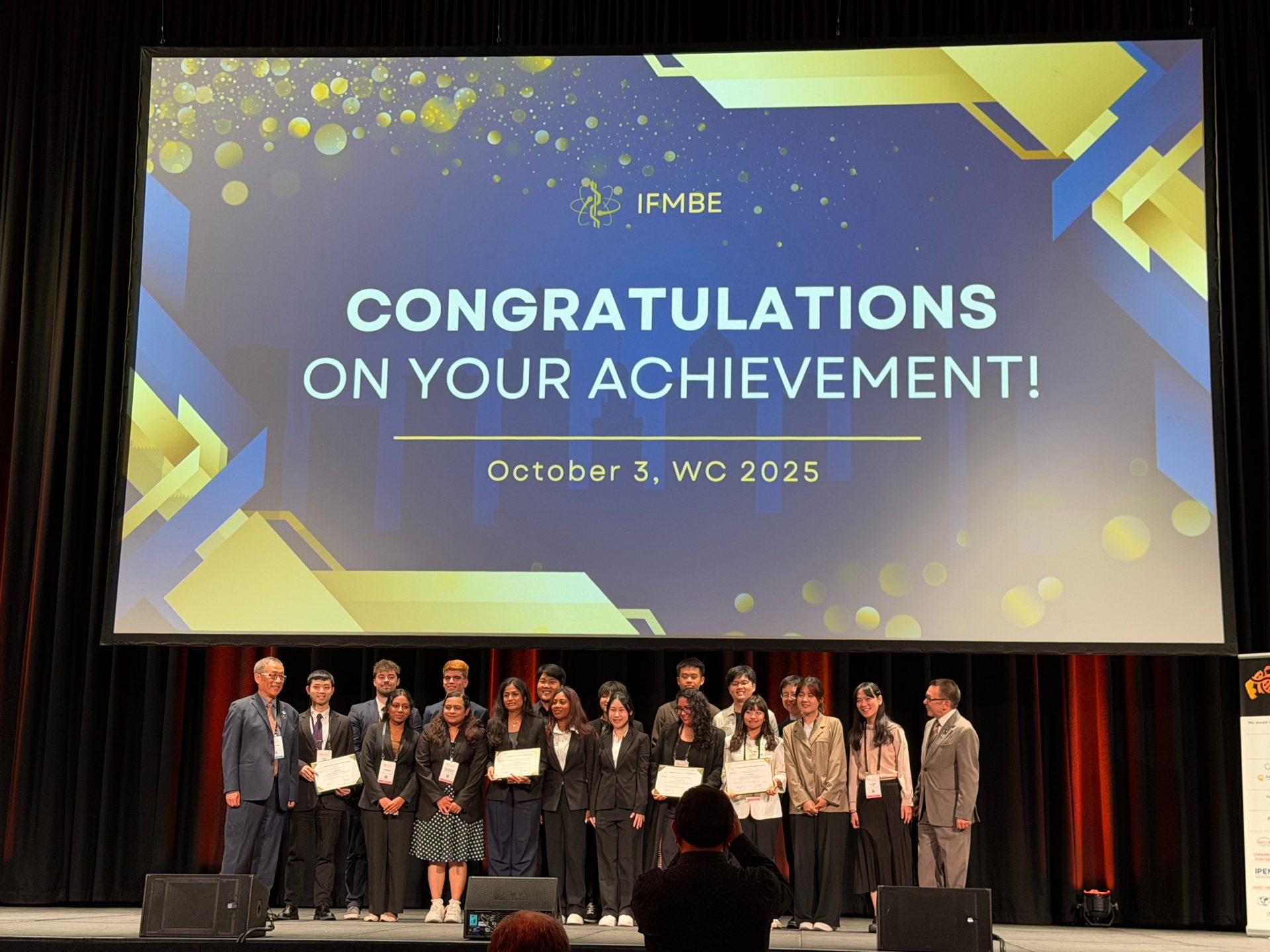 IFMBE awards were presented at the Opening Ceremony of the World Congress 2025 on 29th September 2025. Visit https://ifmbe.org/announcements/awards/awards-recipients/ to learn more. Congratulation to all recipients once more!